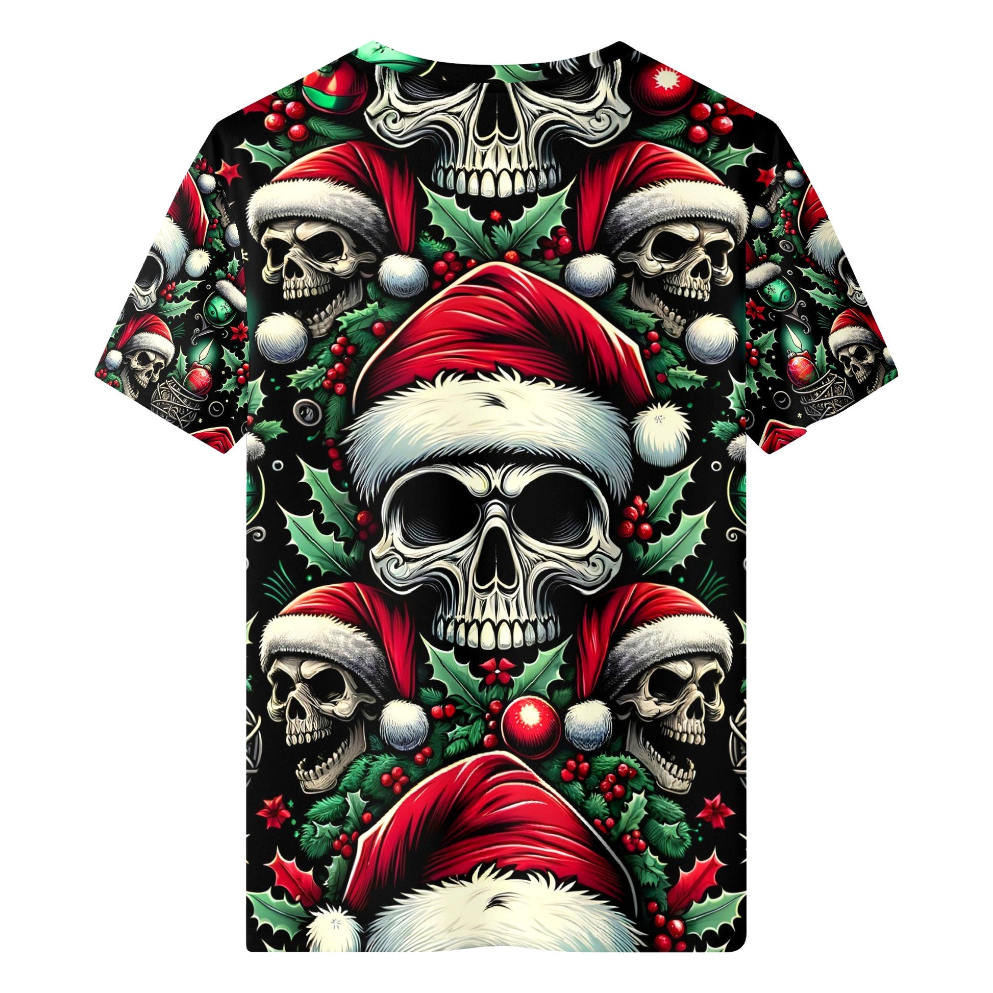 Own the holidays with attitude. The Candlelit Skulls Lycra T-Shirt blends festive cheer with a rebellious edge: skulls in Santa hats weave through holly leaves, berries, and flickering candles in a bold, intricate pattern. Contrasting holiday elements with dark imagery creates a striking, edgy aesthetic, perfect for metalheads, punks, goths, rockabillies, and bikers who don’t follow the crowd.