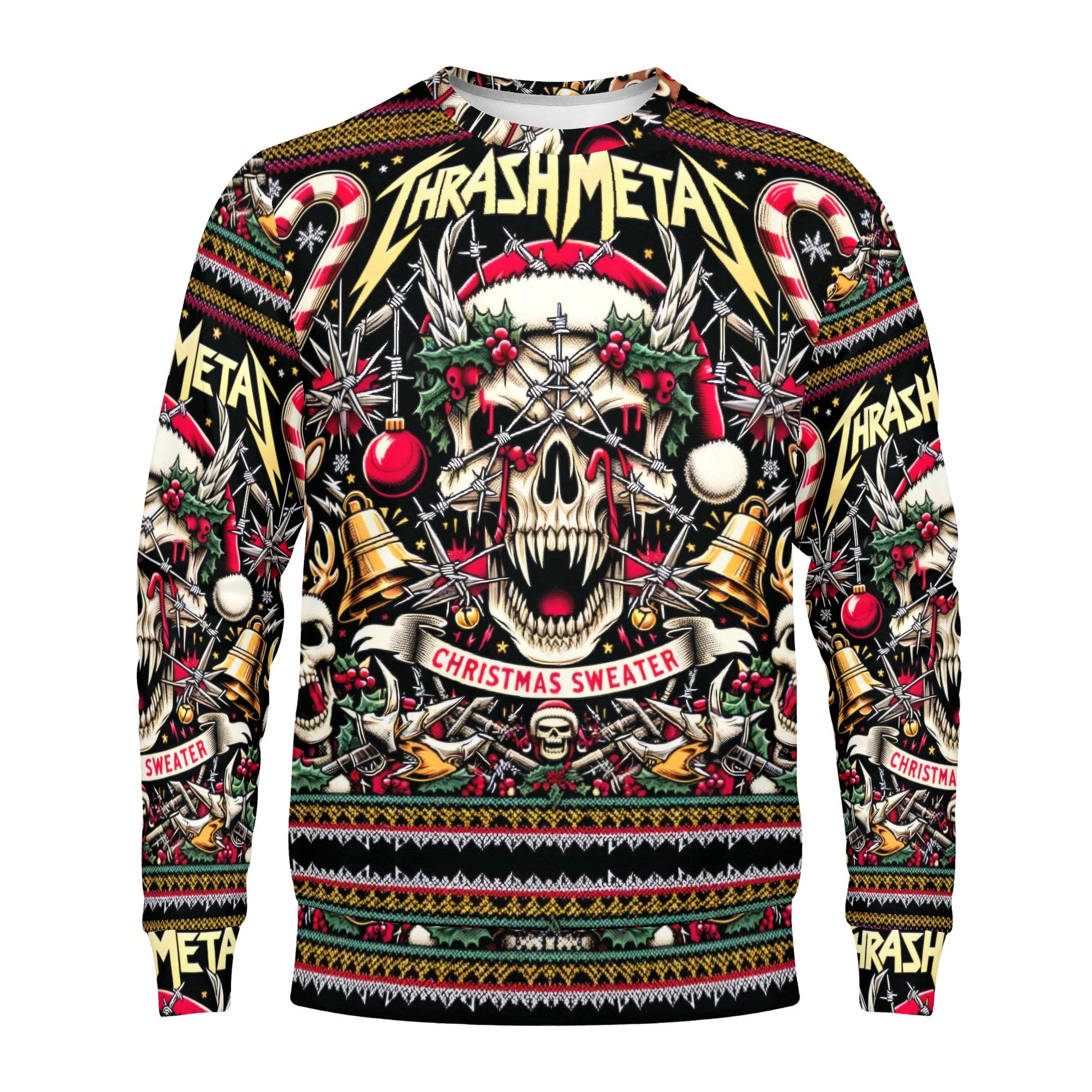 The Chaosmas Sweatshirt by Loud & Lethal takes the soft, sugary edge off Christmas and smashes it with pure heavy-metal grit. Skulls in Santa hats, candy canes wrapped in barbed wire, reindeer locked in chaos — this is holiday spirit gone rogue.